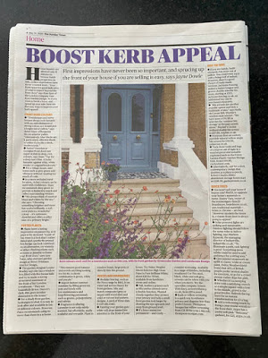 Boost Kerb Appeal – greencube garden design appeared in the Sunday Times, in a feature about boosting kerb appeal by Jayne Dowle. We delivered a garden design for a front garden in Greenwich, blending the old with the new. Soft Yorkstone bullnose paving blends with the old yellow London brick of the house creating a contrast with the geometric patterned replica Victorian feature tiles. We’ve used a simple mix of planting to create a wonderful, smart and clean entrance to this lovely family home and an additional basement seating area that catches the late afternoon sun.
